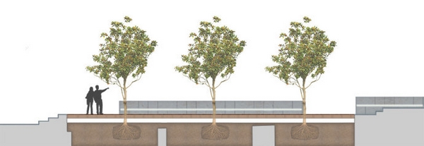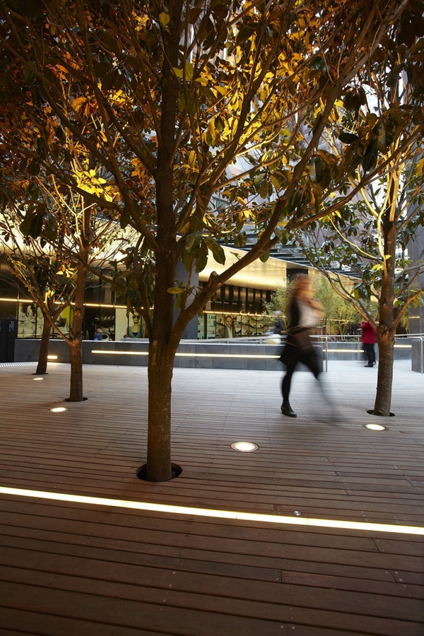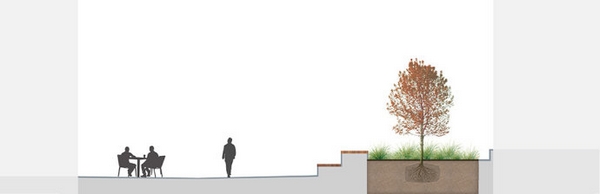 設(shè)計(jì)項(xiàng)目包括一塊以木蘭樹(shù)為兩個(gè)廣場(chǎng)中間一個(gè)主要的視覺(jué)節(jié)點(diǎn)的景觀設(shè)計(jì),木蘭樹(shù)在此還可以阻擋風(fēng)力;為零售空間提供的正式座位區(qū)和為當(dāng)?shù)鼐用癯晕顼堅(jiān)O(shè)置的非正式地區(qū)。