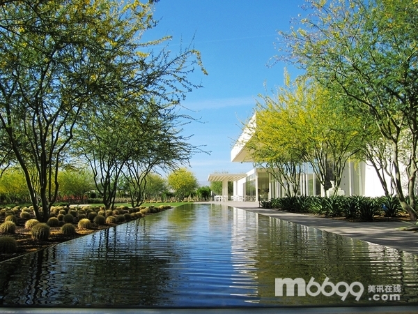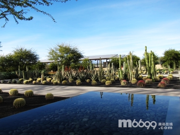 這個(gè)15英畝的SUNNYLANDS中心及花園是Walter Annenberg大使及其夫人Lenore的沙漠休養(yǎng)寓所的擴(kuò)展項(xiàng)目。項(xiàng)目充分納入四周山地美景,SUNNYLANDS中心圍繞一座已獲得綠色認(rèn)證的建筑進(jìn)行規(guī)劃。整座建筑占地15,000平方英尺,可供導(dǎo)游帶領(lǐng)游客參觀此處,可舉辦教育展覽,有接待區(qū)、咖啡館、展覽區(qū)、影院以及一間禮品店。OJB的景觀設(shè)計(jì)處處迎合索諾蘭沙漠的氣候特點(diǎn),為游客提供了一次精心打造的花園體驗(yàn)。