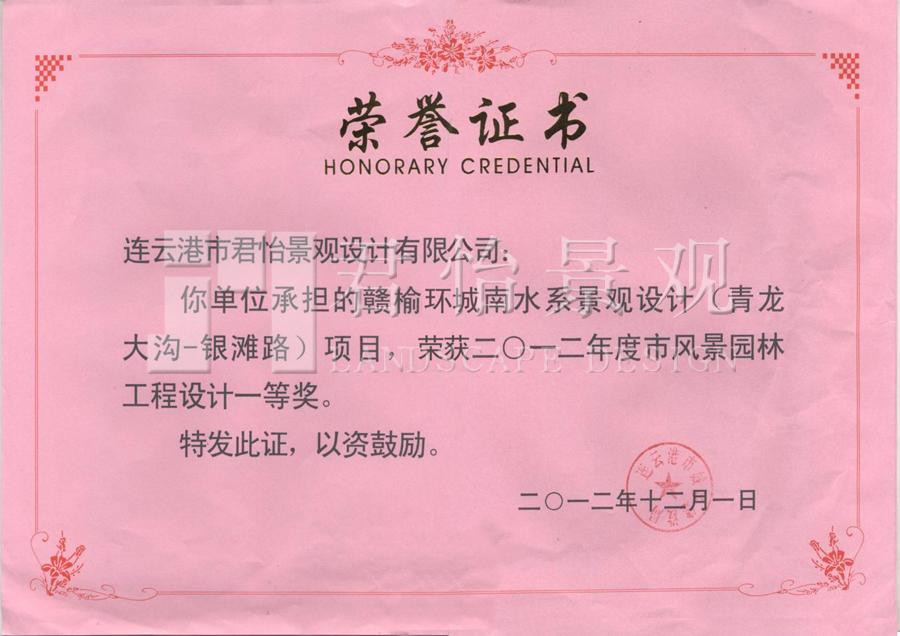 2012年獲獎(jiǎng)證書