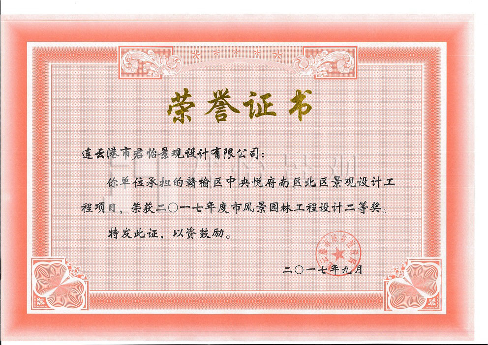 2017年獲獎證書